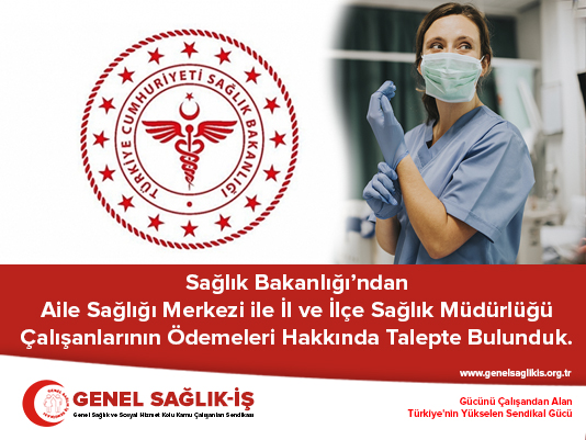 Biz bu aşamada Genel Sağlık-İş olarak Halk Sağlığı Genel Müdürlüğünden talepte bulunduk ve bu süreç boyunca Mart, Nisan ve Mayıs 2020 aylarında aile sağlığı merkezlerimizin ödemelerinde her ne gerekçe ile olursa olsun performanslarında kesintisi yapılmamasını, Covid-19 nedeniyle yatarak veya evde karantina yöntemiyle tedavi gören ya da Cumhurbaşkanlığı veya Sağlık Bakanlığı genelgeleri ile idari izinli kabul edilen personel ile her ne gerekçe ile olursa olsun görevde bulunamayan sağlık çalışanlarının ödemelerinden herhangi bir kesinti yapılmamasını, aile sağlığı çalışanlarımıza kayıtlı kişi sayısının (3) katsayı ile çarpılarak bulunacak bedelin herhangi bir kesintiye tabi olmaksızın kendilerine ödenmesi ve İl ve İlçe Sağlık Müdürlüklerinde görevli olan ve bu dönemde çok yoğun çalışma temposunda çalışan tüm personele de ek ödemelerinin tavadan ve herhangi bir kesinti yapılmadan ödenmesini talep ettik.
