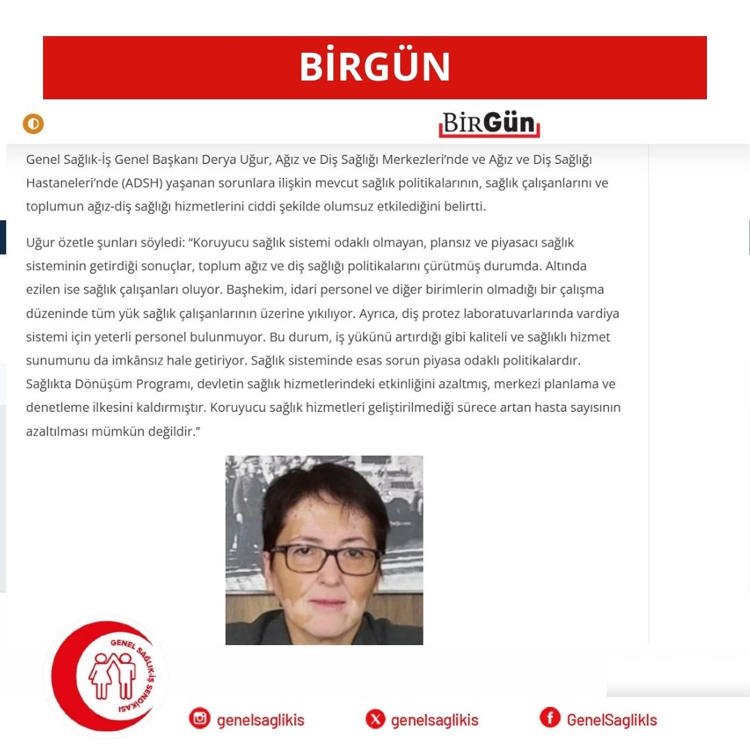 Genel Sağlık-İş Genel Başkanı Derya Uğur, Ağız ve Diş