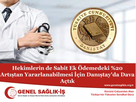 Her ne kadar Toplu Sözleşme’nin 45. maddesinde yer alan düzenlemede, yine Toplu Sözleşme’nin 4. maddesine göre, tabip dışı personelin ek ödemeden yararlanacağı düzenlenmiş ise de, tabip ve uzman tabiplerin bu düzenleme dışında bırakılmasının, haklı, kabul edilebilir, makul bir gerekçesi bulunmamaktadır. Sınıf ayrımı olmaksızın, sağlık emekçileri tarafından, döner sermayeye katkı sağlanmaktadır. Hal böyle olunca, tabip, uzman tabip veya tabip dışı personel ayrımı yapılması, “hukuka ve eşitlik ilkesine” açıkça aykırıdır. Bu nedenle, tabip dışı personelin yanı sıra, tabip ve uzman tabip olarak görev yapmakta olan sağlık emekçilerinin de ek ödemeden yararlanabilmesi için Sendikamızca, Danıştay 12. Dairesi nezdinde iptal davası açılmıştır.