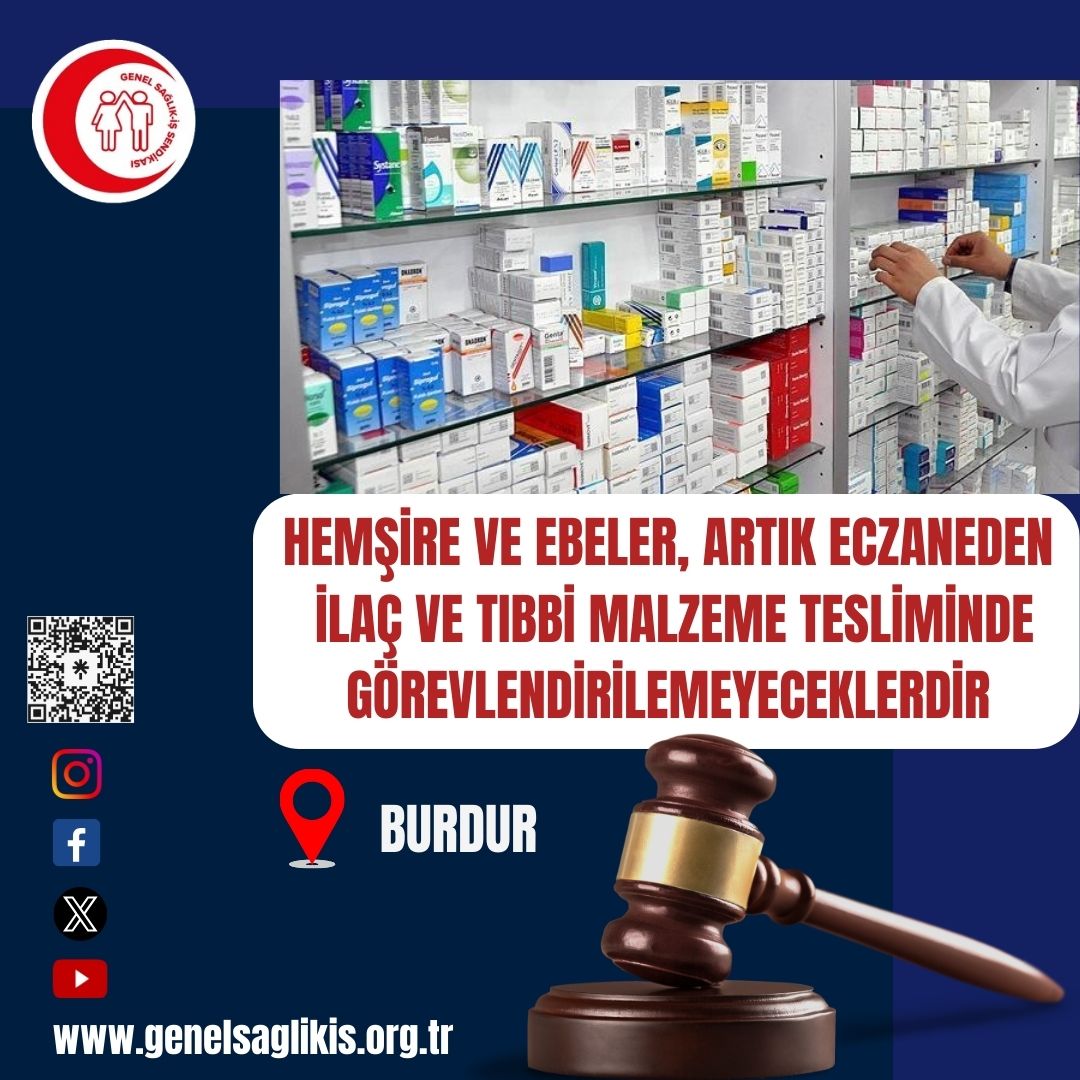 Isparta 2. İdare Mahkemesi tarafından yapılan yargılama sonucunda verilen kararda, “Bu durumda, ilaç ve tıbbi malzeme taşınmasına ve teslimine ilişkin görevlerin eczane hizmetleri kapsamında eczacı ve eczacı teknisyenlerine ait olduğu, ancak bu personelin bulunmaması durumunda bu görevlerin hemşire ve ebeler tarafından yürütülebileceği, davalı idare bünyesinde ise başeczacı, yeterli sayıda eczacı, eczacı teknisyeni ve eczacı teknikerinin bulunduğu görülmekle, "Hastanede görevli “hemşire ve ebelerin” ilaç ve tıbbi malzeme taşınmasında ve tesliminde görevlendirilmesine ilişkin uygulamaya son verilmesi, yönetmelik hükümlerine göre hastalara verilecek ilaçların usulüne uygun olarak hazırlanıp ilgililere teslimi ve buna bağlı olarak ilaç ve tıbbi malzemelerin taşınması işlerini içerir bir görevlendirme şeması oluşturulması, belirtilen şemanın oluşturulması aşamasında belirtilen işlerin “eczacı ve eczacı teknisyenlerine” ait olduğuna ilişkin mevzuat hükümlerinin dikkate alınması" yönünde yapılan … tarih ve … sayılı başvurunun reddine dair Burdur Valiliği İl Sağlık Müdürlüğü Burdur Devlet Hastanesi Başhekimliğinin … tarih ve … sayılı işleminin reddine dair dava konusu işlemde hukuka uyarlık bulunmadığı sonucuna ulaşılmıştır.” denilerek, hukuka aykırı uygulamanın İPTALİNE KARAR VERİLMİŞTİR.