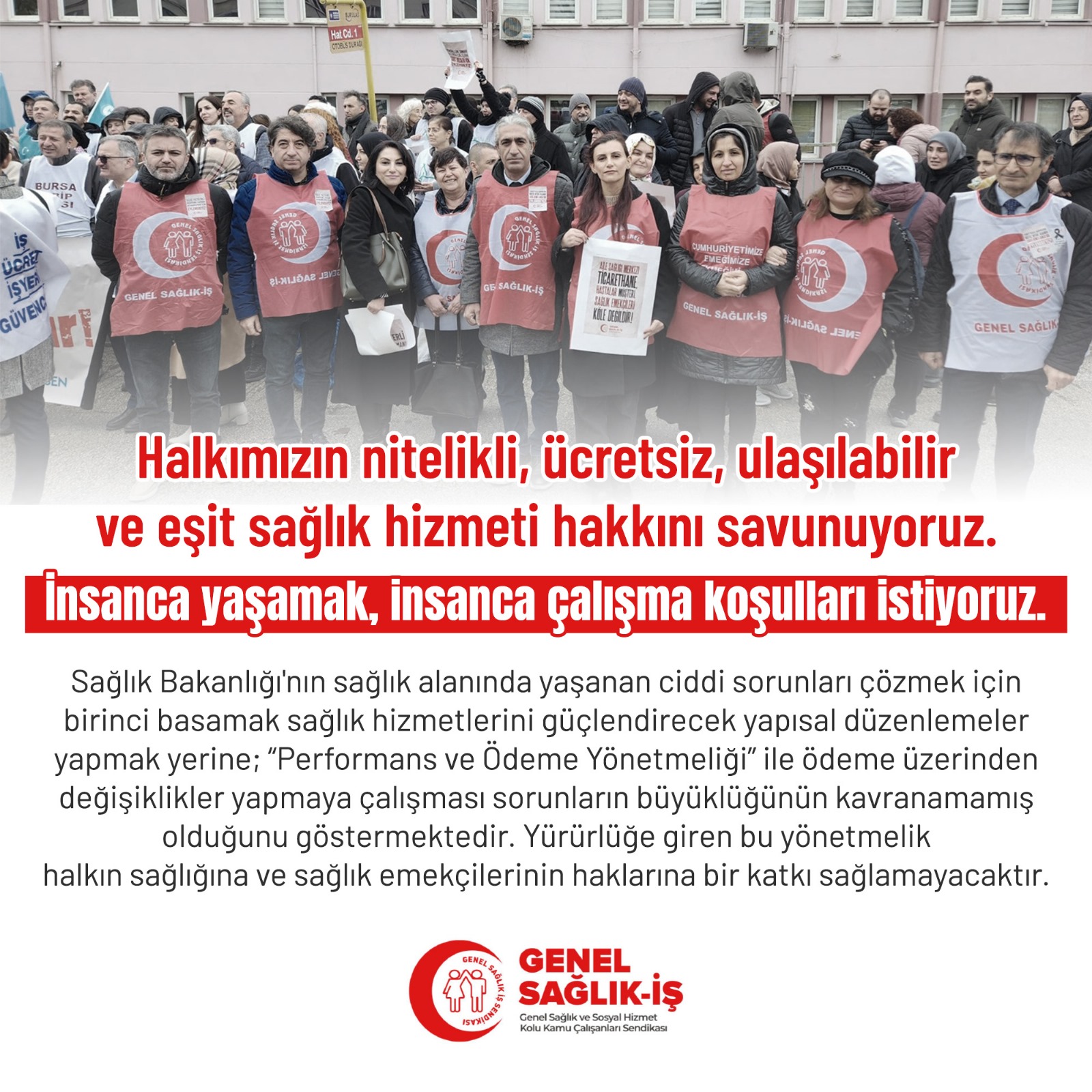 Halkımızın nitelikli, ücretsiz, ulaşılabilir ve eşit sağlık hizmeti hakkını savunuyoruz.