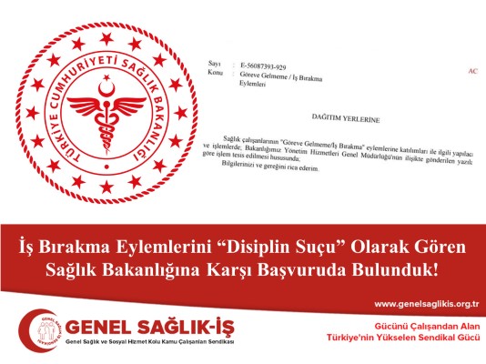 “Sendikal faaliyette bulunma özgürlüğüne” aykırı tutum sergileyen, yargı mercileri üzerinde baskı oluşturan görüş ortaya koyan Sağlık Bakanlığı Yönetim Hizmetleri Genel Müdürlüğü’nün bu tutumunu kınıyoruz.