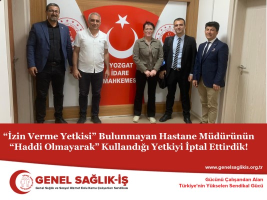 Genel Sağlık-İş, yine farkını ortaya koyarak, emsal bir karara imza atmış, diğerlerinin seyirci kaldığı bir ortamda, EMEKÇİNİN YANINDA OLAN, EMEKÇİYİ KORUYAN GERÇEK BİR MÜCADELE SENDİKASI OLDUĞUNU bir kez daha herkese göstererek, haddini bilmeyen idarecilere haddini bildirmiştir.