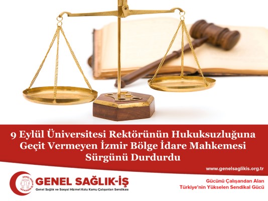 9 Eylül Üniversitesi Rektörü’nün hiçbir yasal dayanağı olmayan sürgün niteliğindeki idari işlemlerine karşı Sendikamız Genel Sağlık-İş tarafından İzmir İdare Mahkemelerinde yürütmenin durdurulması talepli iptal davaları açılmıştır.