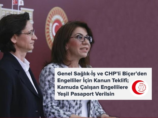 Sendikamız Genel Sağlık-İş ve CHP Manisa Milletvekili Dr. Tur Yıldız Biçer, tarafından hazırlanan, devlet memuru olarak istihdam edilen%40 ve daha fazla engel oranına sahip engelli vatandaşların, 10 yıllık hizmet süresini tamamlaması halinde yeşil pasaport alabilmesine yönelik kanun teklifi önerisi Meclis gündeminde. Engelliler için hazırlanan kanun teklifini CHP Manisa Milletvekili Biçer, Türkiye Büyük Millet Meclisi Başkanlığı’na sundu.