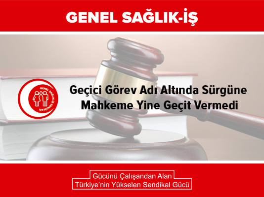 Üyemiz ve temsilcimizin 8 ay boyunca başka bir ilçeye sürgüne gönderilmesi işlemine karşı Sendikamızca hemen Kayseri 1. İdare Mahkemesi’nde yürütmenin durdurulması talepli iptal davası açılmıştır. Mahkemece işlemin açıkça hukuka aykırı olduğu tespiti yapılarak, “sürgünün” yürütmesi durdurulmuştur.