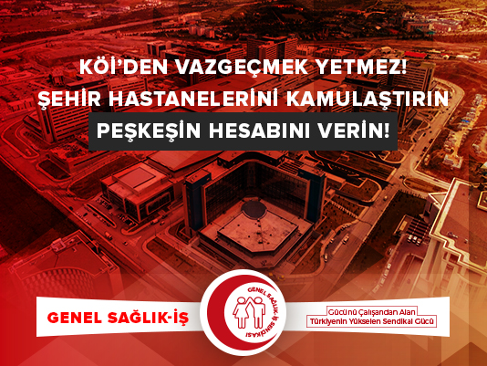 “Ticari sır” denilerek sözleşmeleri TBMM’den bile gizlenen şehir hastaneleri için sadece kamu özel iş birliği modelinden vazgeçmek çözüm değildir. Hizmete açılan 10 şehir hastanesi ve projeleri devam eden şehir hastaneleri ivedilikle Sağlık Bakanlığına devredilmelidir. Sosyal devletin gereği olarak, halkın sağlık hizmetlerine ücretsiz ve kolay ulaşması sağlanmalıdır. Şehir hastaneleri için yapılan milyarlarca liralık israfın ve peşkeşin hesabı verilmelidir.