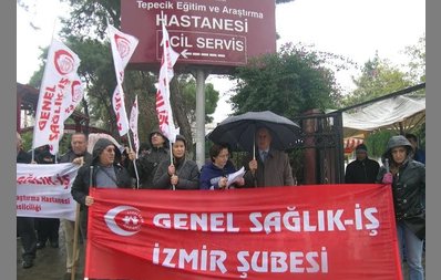 İzmir Tepecik Eğitim ve Araştırma Hastanesi çalışanları mutsuz, Tepecik Eğitim ve Araştırma Hastanesi çalışanları insanca yaşam koşullarını yitirmiştir. İş yükü o denli artmış ki çalışanların aile ve sosyal yaşamı altüst Hastanemizde % 300 artan iş yüküne karşı % 30 oranında çalışan artışı olmuştur. Kölelik düzeyinde çalışma, olağan çalışma biçiminin yerini almıştır.AKP hükümetinin uyguladığı Sağlıkta Dönüşüm Programının önemli hedeflerinden birisi de sağlık tüketimini arttırmaktı. İş yükünün bu denli artmasına karşı çalışan sayısı özellikle yetersiz tutuldu. Az çalışanla çok iş yaklaşımı geçerli kılındı. İnsanlar kişisel ilişkilerini ve gereksinimlerini yerine getiremez oldular. Meslek dışı görevlendirmeler, fazla mesai, gün aşırı,16-24 saatlik nöbetler, liyakatsız atamalar, torpil, angarya, adam kayırmalar, sağlığımızı bozan kötü çalışma koşulları, yönetici baskısı katlanılamaz boyutlara ulaştı. Yine Sağlıkta Dönüşüm Programının bir gereği olarak sağlık çalışanlarının emeği değersizleştirildi. Emeğimizi ucuzlatmak isteyen hükümet öncelikli olarak, bilinçli bir şekilde, emeğimizin değersizleşmesi için çalıştı. Alo 184, hasta hakları birimleri, Başbakan ve Sağlık Bakanı’nın sağlık çalışanlarına karşı söylemleri sağlıkta şiddeti doğurdu. Sözel ve fiziksel şiddet yaygınlaştı. Performans adı altında ekip ruhumuzu bozan, emeğimizin karşılığını almamızı engelleyen, sağlık tüketimini körükleyen uygulamalar hayata geçirildi. Emekliliğimize yansıyan emeğimizin karşılığı olan ve insanca yaşamımızı sağlayacak temel ücretimizin yerine sabit ödeme, performans getirildi.