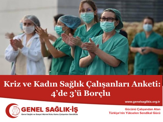 Genel Sağlık-İş tarafından yapılan “Kriz ve Kadın Sağlık Çalışanları” araştırması, 8 Mart Dünya Emekçi Kadınlar Gününde pandeminin ve ekonomik krizin kadın sağlık çalışanları üzerindeki etkilerini ortaya koymaktadır. Yüzde 78’i borçla yaşayan kadın sağlık çalışanları, elektriğinden, doğalgazından, gıda harcamalarından kısıntıya gitmiştir. İş yerlerinde şiddete uğrayan, fazla mesaiye kalan, görevleri dışında işlerde çalıştırılan kadın sağlık çalışanlarının yüzde 57’si yurtdışında çalışmak istemektedir.