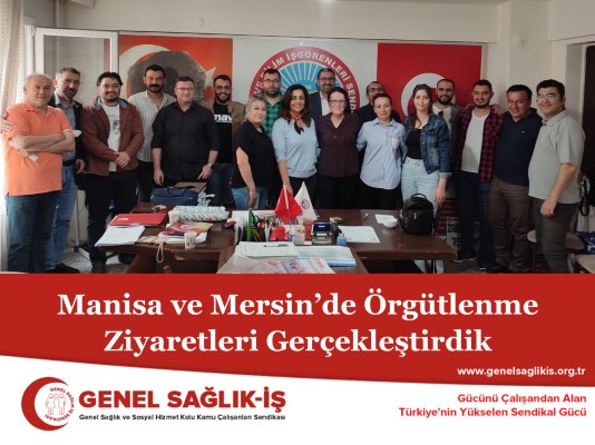 Örgütlenme çalışmalarını hız kesmeden sürdüren Sendikamız Genel Sağlık-İş Genel Başkanı Derya Uğur, Manisa ve Mersin'de bir dizi temaslarda bulundu.