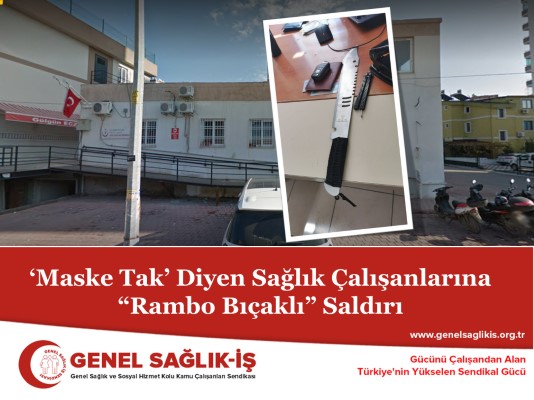 Aile Sağlığı Merkezinde görevli sağlık çalışanları, "maske takın" uyarısında bulundukları kişilerin bıçaklı saldırısına uğradı. “Rambo bıçağı” diye adlandırılan kesici delici alet ile sağlık kurumlarına girilebilmesi, ASM’lerdeki güvenlik sorununu bir kez daha gözler önüne sermiştir. Sağlık çalışanları ölümle burun buruna çalışırken, siyasi iktidar ise şiddet olaylarına seyirci kalmaktadır.