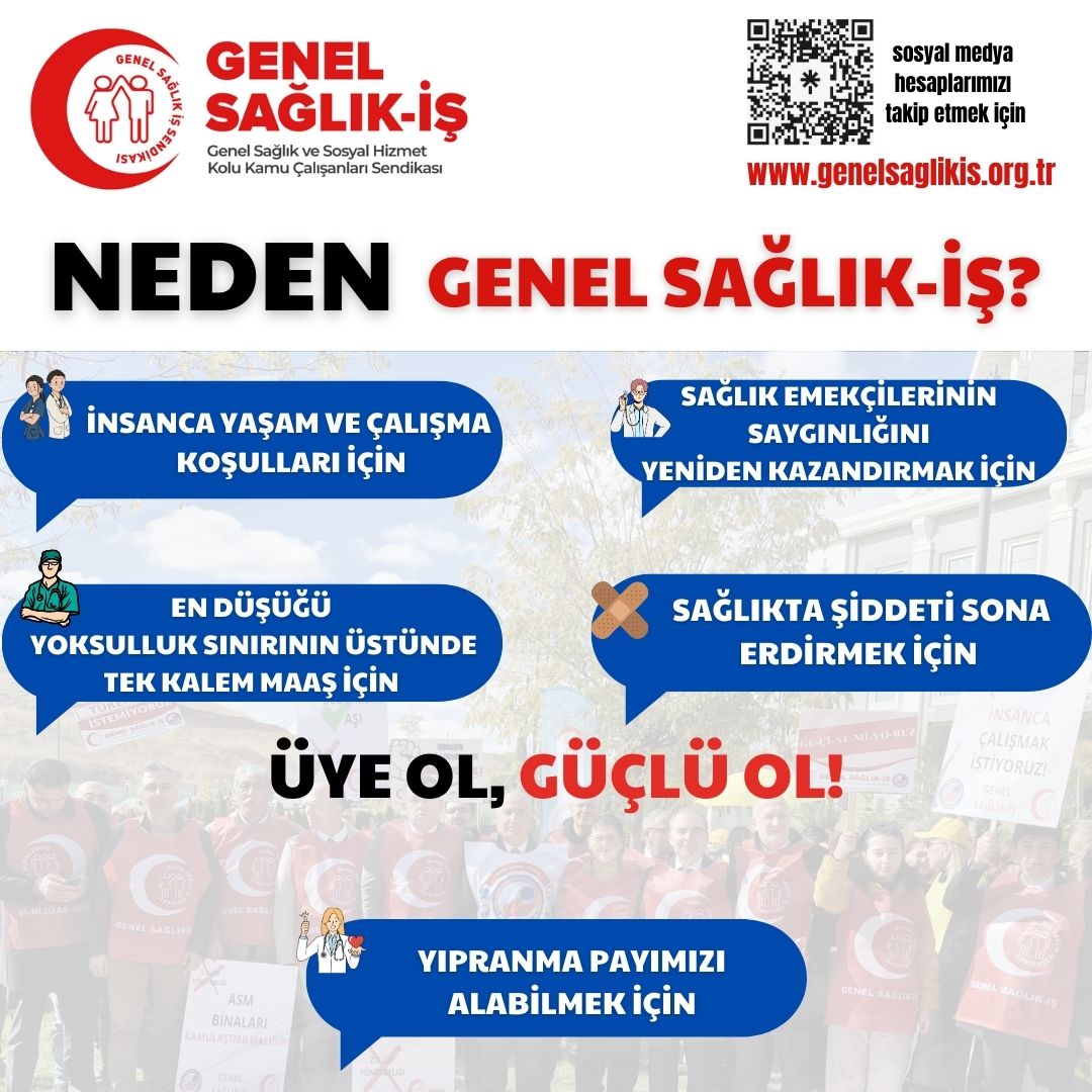 Genel Sağlık-İş olarak, sağlık çalışanlarının haklarını korumak için var gücümüzle çalışıyoruz. Sen de bu mücadelede yerini al, birlikte daha güçlü olalım. Hemen üye ol, sesimizi daha da yükseltelim!