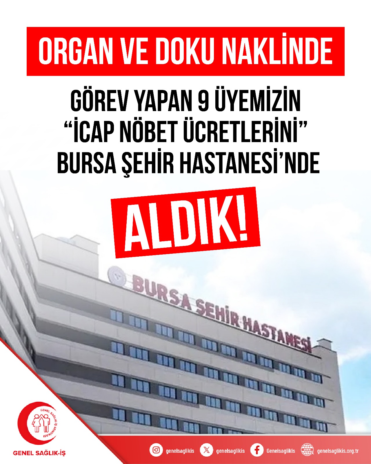 Üyelerimizin hak edişlerini ödemeyen Bursa Şehir Hastanesi Başhekimliği,