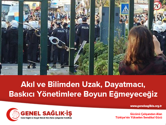 Siyasi iktidarı üniversitelerden elini çekmeye çağırıyor, her kim olursa olsun hukuk dışındaki tüm davranışları kınıyor, “özgür düşünceye, demokrasi ve hukuka saygının" tek çıkar yolumuz olduğunu bir kez daha hatırlatıyoruz. Genel Sağlık-İş olarak laik hukuka, demokrasiye ve özgür düşünceye saygı gösterilmesini istiyoruz.