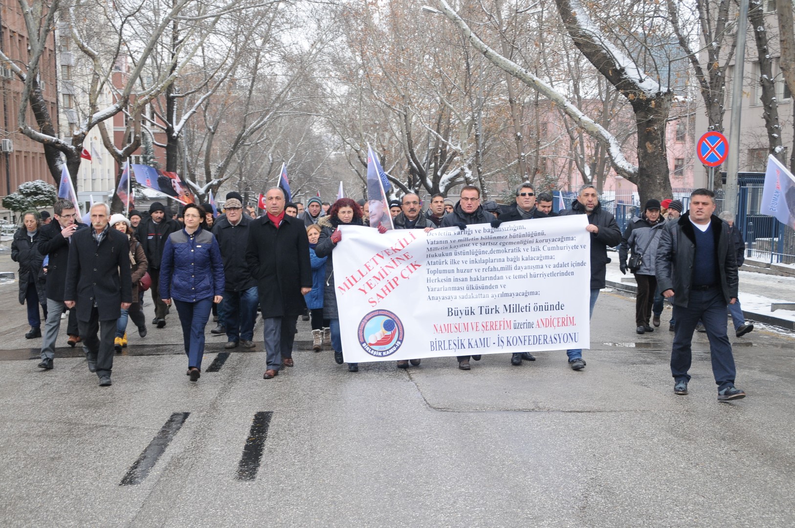 Genel Sağlık- İş’in de içerisinde yer aldığı Demokratik Kitle Örgütleri Güvenpark’ta toplanarak Meclis Dikmen kapısı önüne yürüyerek AKP ve MHP’nin Genel Kurul’a getirmek istediği “Başkanlık Anayasasını” protesto etti. Konfederasyonumuz Birleşik Kamu-İş’in, “Milletvekili Yeminine Sahip Çık” pankartı eşliğindeki yürüyüşte sık sık “Başkanlık Anayasasına Hayır” sloganları atıldı.