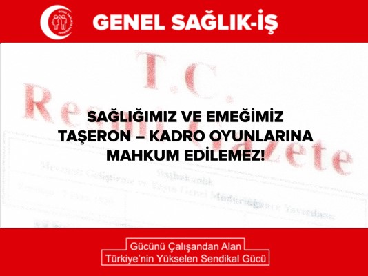 Çalışanlar arasında farklı çalışma biçimlerine (4C,4B vb.) son verilmeli, tüm emekçiler kadrolu, güvenceli çalışma koşullarına kavuşturulmalıdır. Kadrolu-kadrosuz her sağlık çalışanını çok daha kötü ve zorlu bir gelecek beklemektedir. Genel Sağlık-İş olarak, sağlık kurum ve kuruluşlarında birlikte sağlık hizmeti verdiğimiz emekçilerin kaderinin her geçen gün daha da ortaklaştığını görüyor ve gözlemliyoruz. Bu süreçte hem kapsam dışı tutulan taşeron işçiler, hem “sürekli işçi statüsüne” geçirilmiş taşeron işçiler hem de kadrolu istihdam edilen sağlık emekçileri olarak işyerlerinde birlikte mücadelenin koşullarını örmek zorundayız.