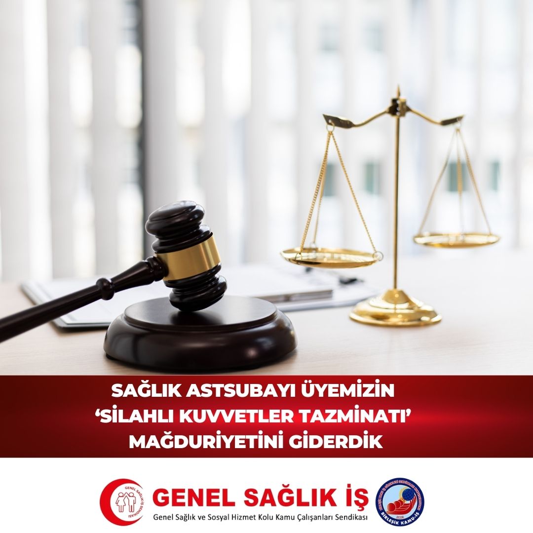 Gülhane Askeri Tıp Akademisi’nde “sağlık sınıfı” muvazzaf astsubay olarak görev yapmakta iken, 6756 sayılı Kanun ile Sağlık Bakanlığı bünyesinde görev yapmaya başlayan üyemiz, Sendikamıza başvurarak, “mevcut durumda “ilk ve acil yardım teknikeri” olarak görev yaptığını, aylıklarını 926 sayılı Türk Silahlı Kuvvetleri Personel Kanununa göre aldığını, astsubay kademeli kıdemli üstçavuş rütbesine terfi ettiğini, silahlı kuvvetler tazminatı yanlış hesaplandığı için maaşının eksik yattığını” belirterek, hukuki destek talebinde bulunmuştur.
