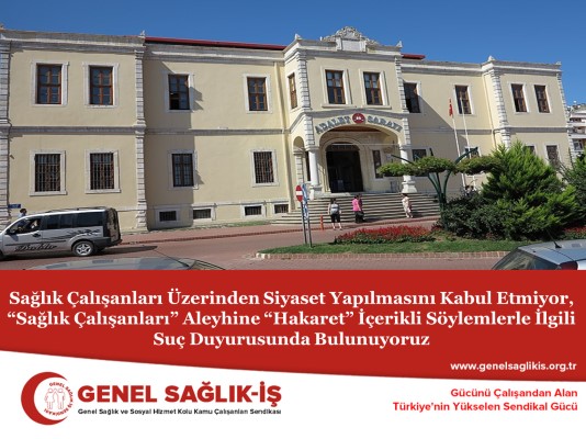 Genel Sağlık-İş olarak, sağlık çalışanları üzerinden siyaset yapılmasını kabul etmiyor, tıpkı somut olayda olduğu gibi “sağlık çalışanları” aleyhine “hakaret” içerikli söylemlerde bulunarak, kamuoyu nezdinde sağlık çalışanlarını rencide eden herkes hakkında gerekli adli sürecin yürütüleceği, hukuk mücadelesinin verileceği hususunda tüm üyelerimiz ile sağlık çalışanlarını temin ederiz.