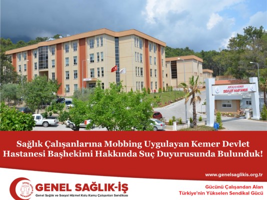 Antalya’da Kemer Devlet Hastanesi’nde görevli Sendikamız Genel Sağlık-İş üyeleri tarafından, yapılan başvurularda, “Sendikamız üyesi olan sağlık çalışanlarının ayrımcılığa tabi tutulduğu, Sendikamız üyesi olan ve olmayan sağlık çalışanları arasında çifte standart uygulandığı, Sendikamız üyesi olan sağlık çalışanlarının görev yerlerinin, yazılı belge bulunmaksızın, hukuka aykırı olarak değiştirildiği, yazılı idari işlem bulunsa dahi görevlendirmelerde, hiçbir hukuki gerekçeye yer verilmediği, hiçbir idari işlem bulunmaksızın, üyelerimizin, dahil olduğu süpervizör nöbetlerinden çıkarıldığı” belirtilmiştir.