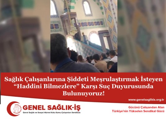 Sağlık çalışanlarına şiddet vakalarının durmak bilmediği, görevi başındaki fedakar sağlık çalışanlarının yaralandığı, hatta öldürüldüğü vakaların artış gösterdiği bugünlerde, sağlık çalışanlarına şiddeti meşrulaştırmak isteyen, şiddeti destekleyen, sağlık çalışanlarına karşı şiddeti azmettiren, sağlık çalışanlarına karşı tehdit ve hakaret eden herkesin, hak ettiği cezalarla cezalandırılabilmesi için, Genel Sağlık-İş olarak, tüm sağlık çalışanlarının yanında olmaya, hadsizlere, HADLERİNİ BİLDİRMEYE devam edeceğiz. Sağlık çalışanları, YALNIZ DEĞİLDİR!