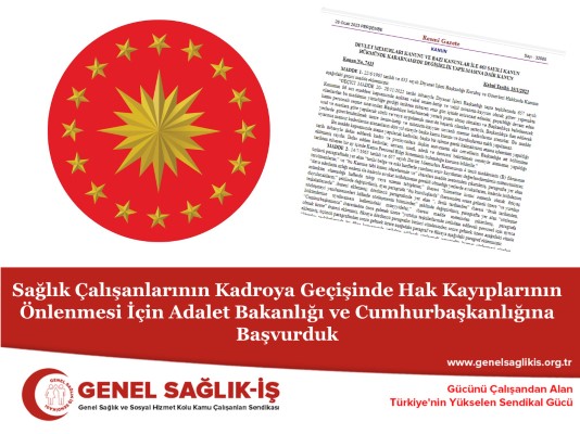 Sendikamız Genel Sağlık-İş hak kayıplarının önüne geçmek için Adalet Bakanlığı ve Cumhurbaşkanlığı’na bir yazı göndererek mağduriyetlerin giderilmesi için gerekli girişimlerde bulunmuştur.