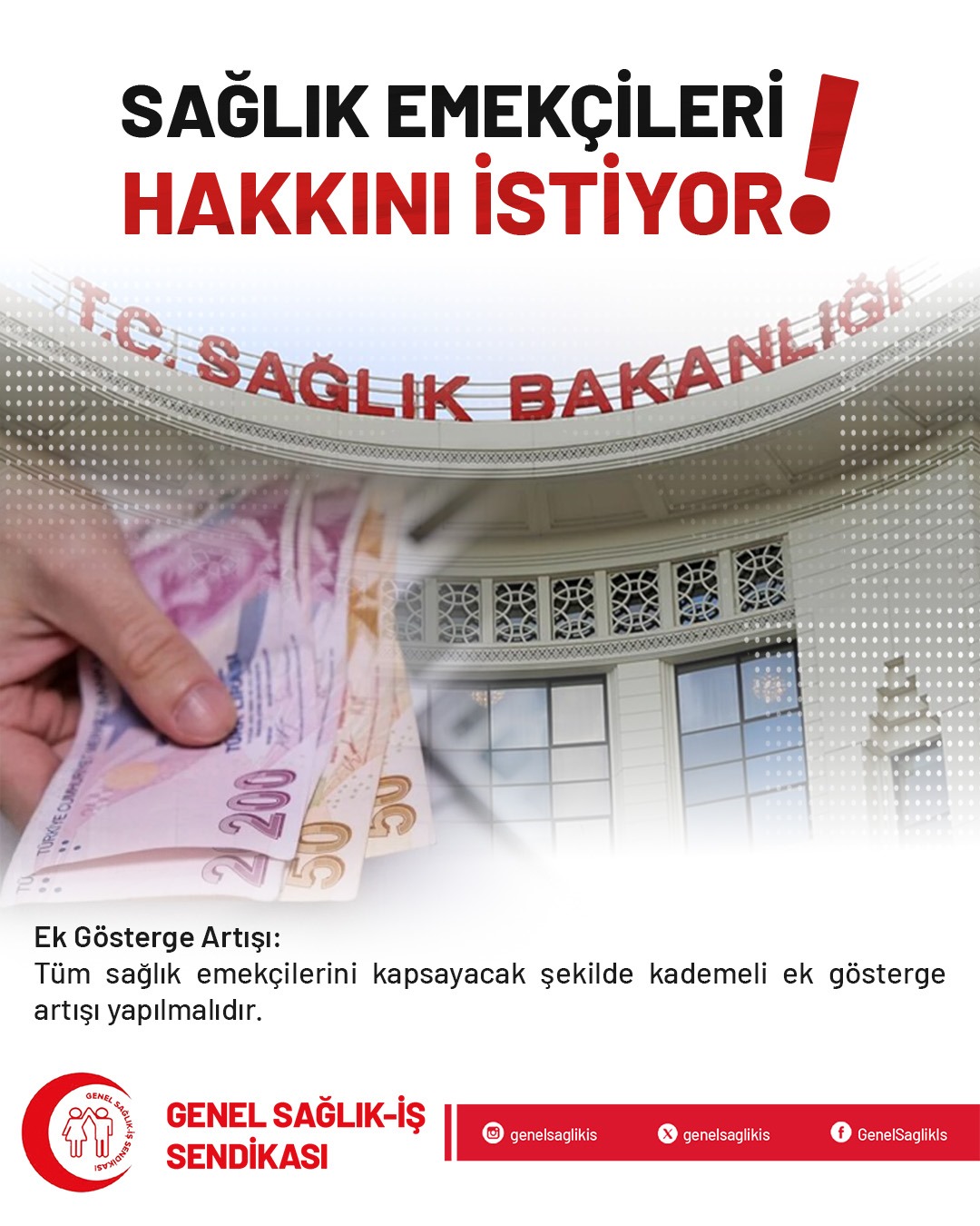Tüm sağlık emekçilerini kapsayacak şekilde kademeli ek gösterge artışı yapılmalıdır.