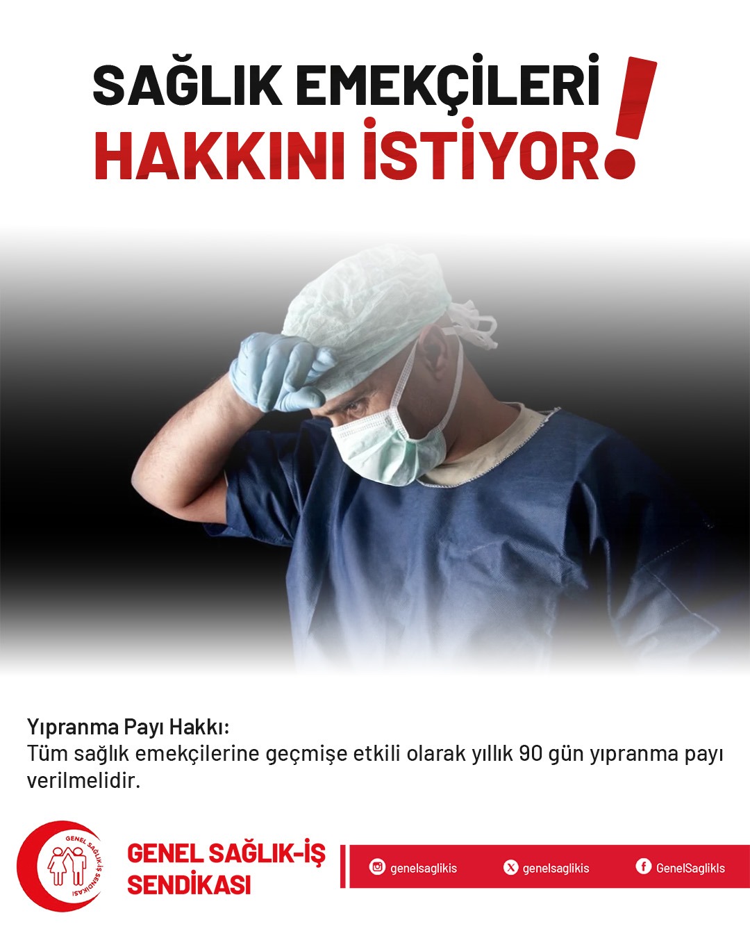 Tüm sağlık emekçilerine geçmişe etkili olarak yıllık 90 gün yıpranma payı verilmelidir.
