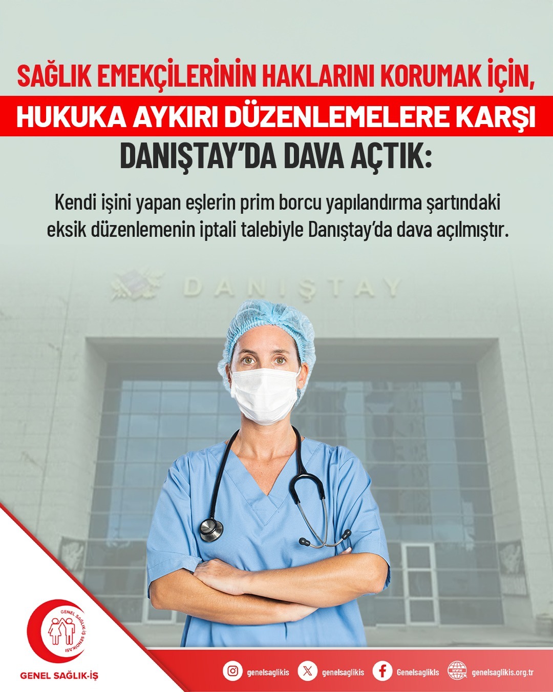 Kendi işini yapan eşlerin prim borcu yapılandırma şartındaki eksik düzenlemenin iptali talebiyle Danıştay'da dava açılmıştır.