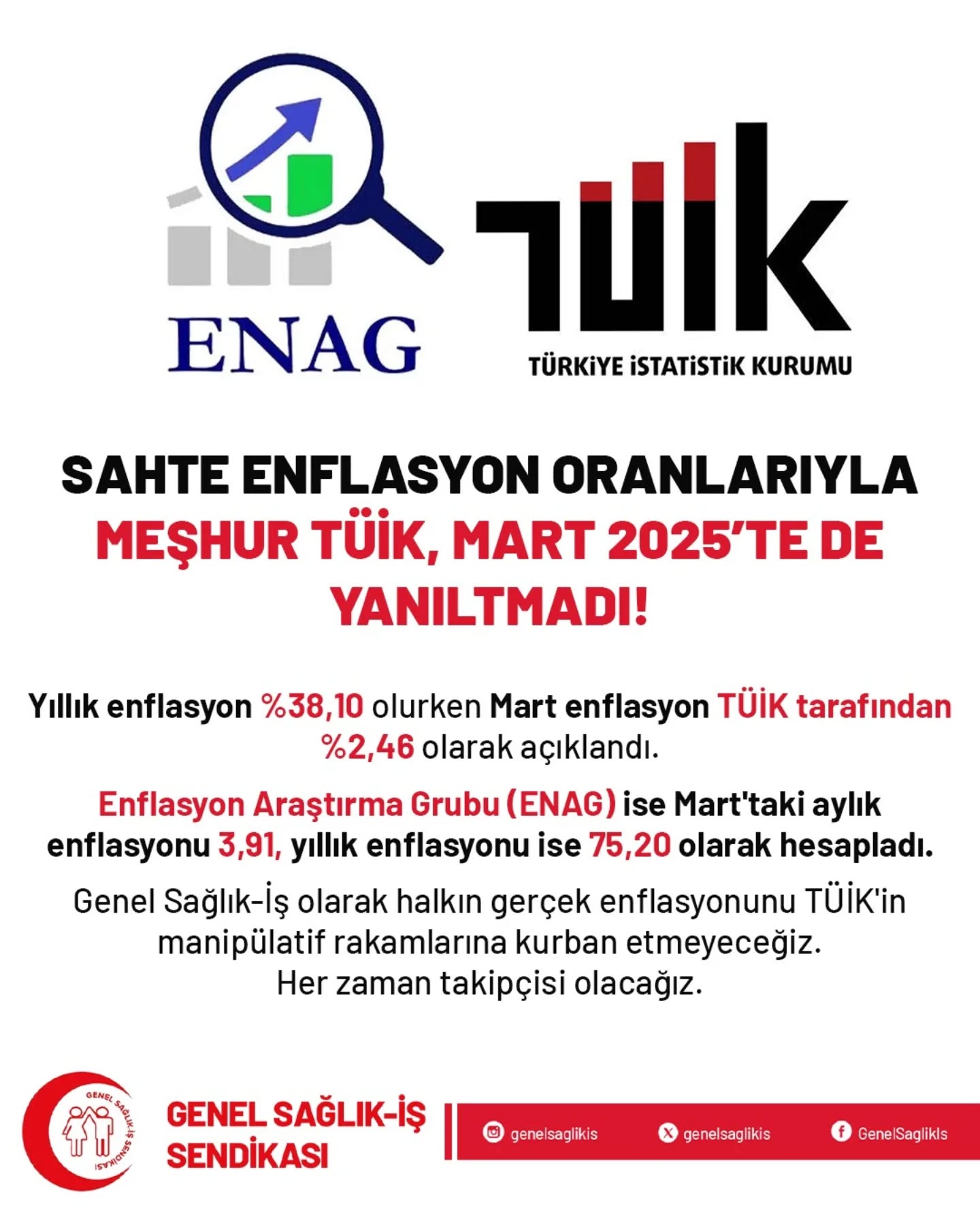 Genel Sağlık-İş olarak halkın gerçek enflasyonunu TÜİK'in manipülatif rakamlarına kurban etmeyeceğiz. Her zaman takipçisi olacağız.