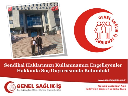 Ankara Etimesgut Ağız ve Diş Sağlığı Merkezi’nde görevli olan ve söz edilen olayda, üyemizin, üyelik kaydını yapmayarak, hem Sendikamızın hem de üyemizin mağduriyetine neden olan personel şube birimi çalışanları hakkında, TCK’nın 118. maddesinde düzenlenen “Sendikal Hakların Kullanılmasının Engellenmesi”, TCK’nın 122. maddesinde düzenlenen “Nefret ve Ayrımcılık” ile TCK’nın 257. maddesinde düzenlenen “Görevi Kötüye Kullanma” suçlarıyla ilgili olarak, Ankara Batı Cumhuriyet Başsavcılığı nezdinde suç duyurusunda bulunulmuş, ilgili kişiler hakkında “kamu davası açılmasına” karar verilmesi talep edilmiştir. İlgili kişiler hakkında, ayrıca, Ankara Etimesgut Ağız ve Diş Sağlığı Merkezi Başhekimliğine başvuruda bulunularak, somut olayda kusuru bulunan kişiler hakkında “disiplin soruşturması açılması ve soruşturma neticesinde bu kişilere disiplin cezası verilmesine karar verilmesi” talep edilmiştir.