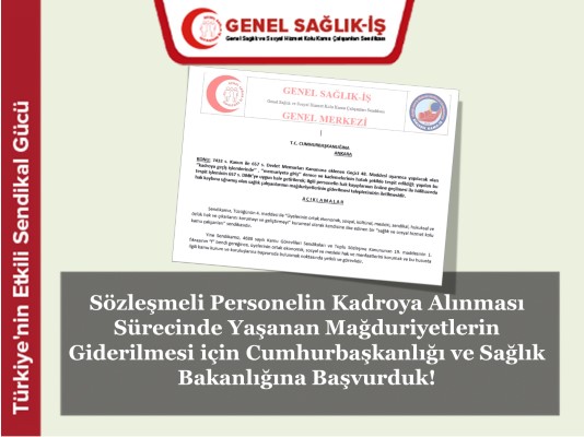 Sözleşmeli Personelin Kadroya Alınması Sürecinde Yaşanan Mağduriyetlerin Giderilmesi için Cumhurbaşkanlığı ve Sağlık Bakanlığına Başvurduk
