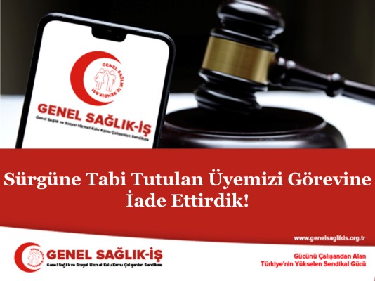 Üyemiz, şikayetçisi olduğu bir durum nedeniyle soruşturma geçirmiş, soruşturma sonucunda ise, adeta sürgüne tabi tutulmuştur. İdarenin, keyfi ve “akıllara zarar” nitelikteki idari işleminin iptal edilmesi ise, yine Genel Sağlık-İş’in girişimleri sonucunda gerçekleşmiştir. Kararın ardından üyemiz, kadrosunun bulunduğu “Acil Sağlık Hizmetleri İstasyonunda” göreve başlayacaktır.