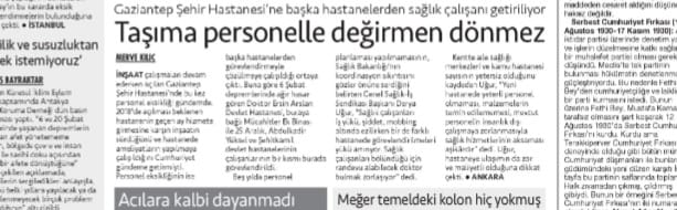 İnşaat çalışmaları devam ederken açılan Gaziantep Şehir Hastanesi’nde bu kez personel eksikliği gündemde.2018’de açılması beklenen hastanenin geçen ay hizmete girmesine karşın inşaatın sürdüğünü ve hastanede ameliyatların yapılmaya çalışıldığını Cumhuriyet gündeme getirmişti. Personel eksikliğinin ise başka hastanelerden görevlendirmeyle çözülmeye çalışıldığı ortaya çıktı.
