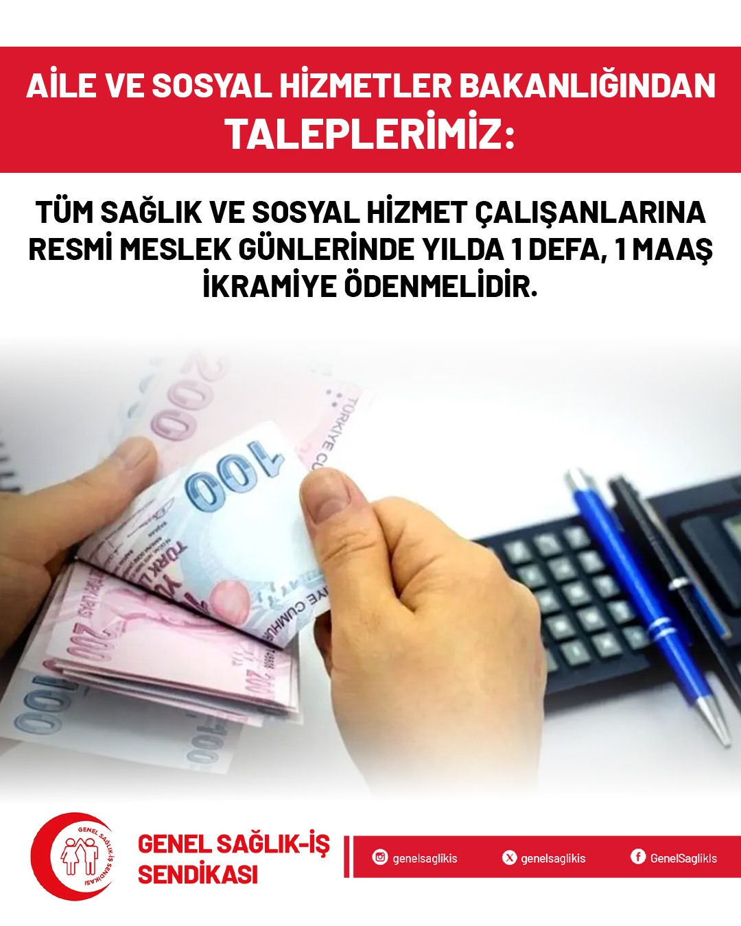 Tüm Sağlık ve Sosyal Hizmet Çalışanlarına Resmi Meslek Günlerinde Yılda 1 Defa, 1 Maaş İkramiye Ödenmelidir.