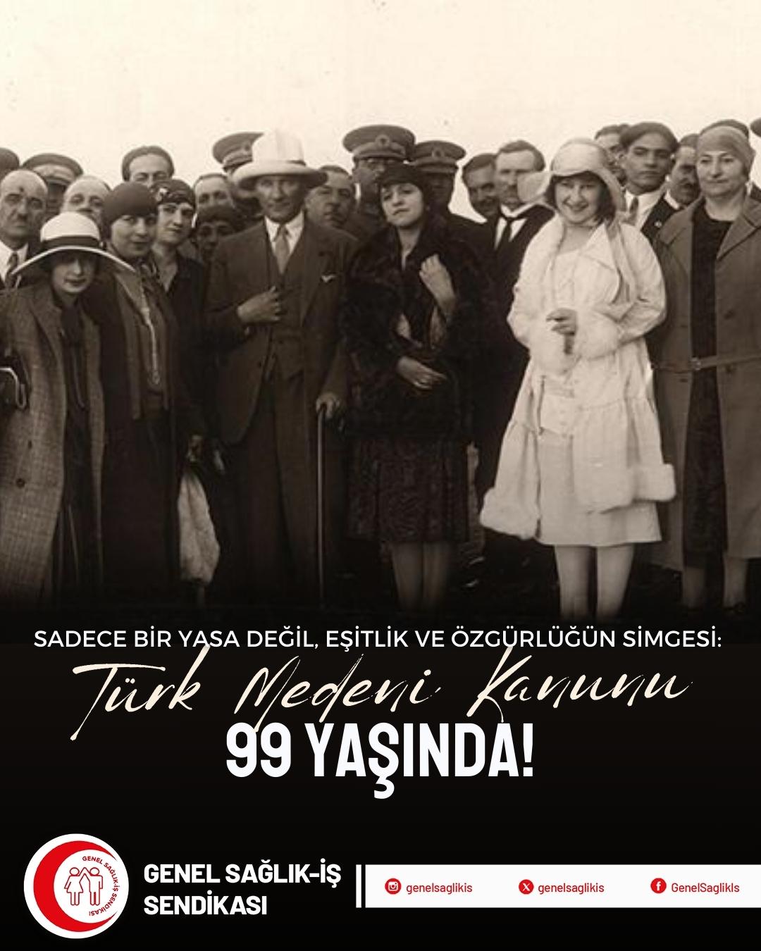 Türk Medeni Kanunu 99 Yaşında! Kadınlara toplumun her alanında eşit yurttaşlık hakkı tanıyan Türk Medeni Kanunu 17 Şubat 1926'da kabul edilmiştir. Mustafa Kemal Atatürk'ün devrimlerinin izinde; Cumhuriyet kazanımlarını, laikliği ve kadın haklarını savunmaya devam edeceğiz. Türk Medeni Kanunu'nun Kabul Edilişinin 99. Yılı Kutlu Olsun.