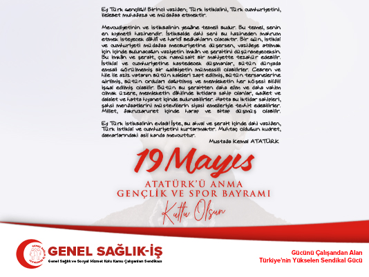Bu inançla 19 Mayıs Atatürk’ü Anma, Gençlik ve Spor Bayramı’mızın 104. Yıl Dönümünü kutluyor, başta Ebedi Önderimiz Başkomutan Mustafa Kemal Atatürk olmak üzere ulusal kurtuluş mücadelemizin kahramanlarını minnet ve saygıyla anıyoruz.