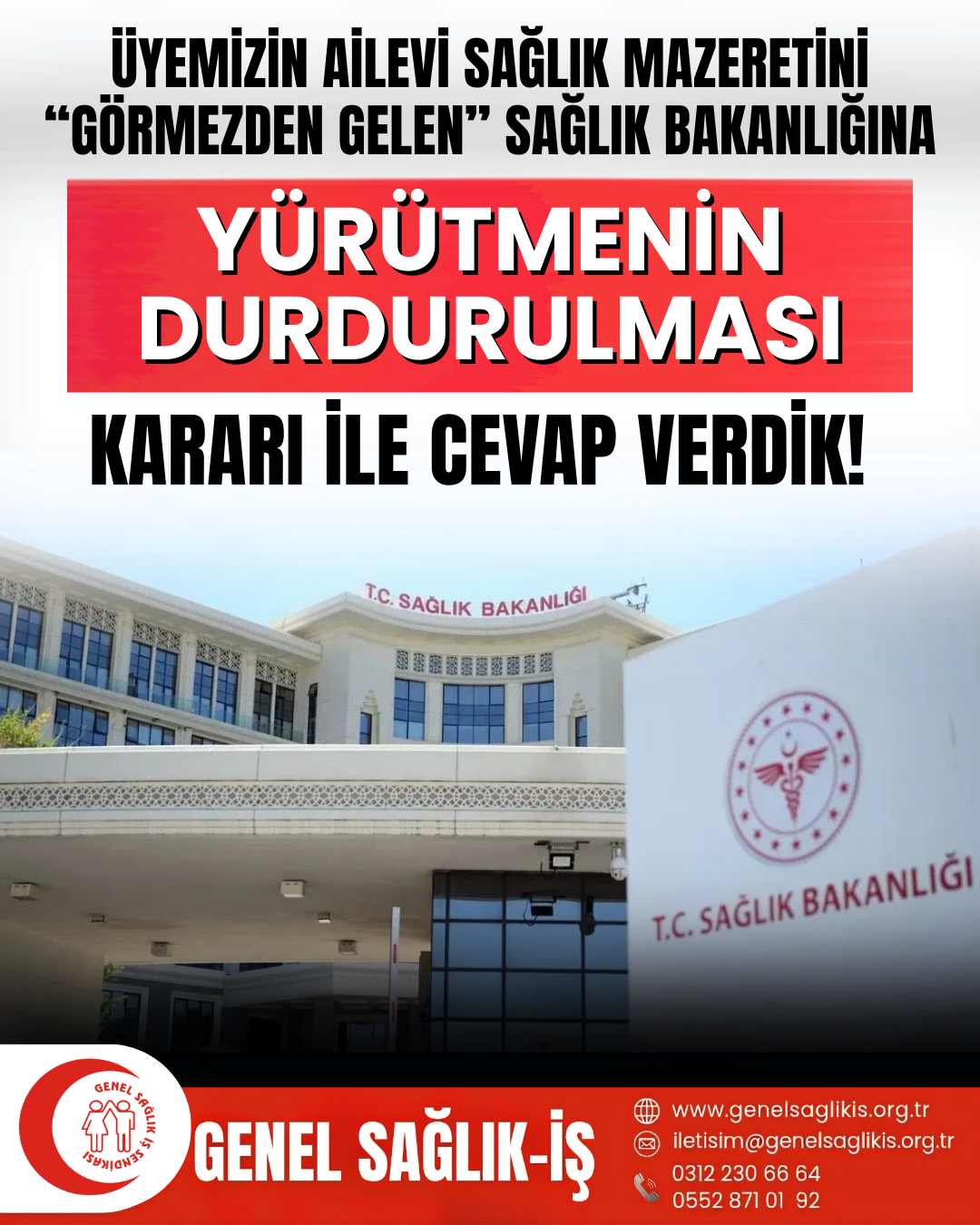 ÜYEMİZİN AİLEVİ SAĞLIK MAZERETİNİ “GÖRMEZDEN GELEN” SAĞLIK BAKANLIĞINA