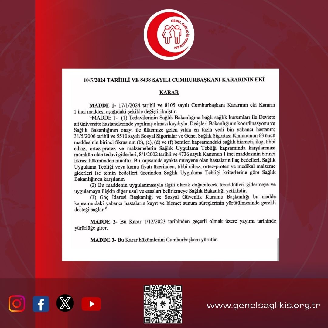 Yabancı hastalara ülke kaynaklarının bu şekilde kullandırılması kabul edilemez. Siyasi iktidar bu kararnameyi bir an önce geri çekmelidir.