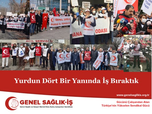 Tüm sağlık çalışanlarının mali ve özlük haklarının iyileştirilmesi talebimize dikkat çekmek amacıyla tüm yurtta iş bıraktık.