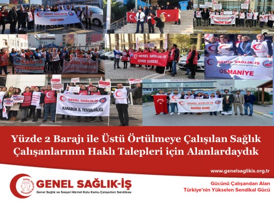 Genel Sağlık-İş olarak; siyasi partilerden bağımsız, ilkeli ve onurlu bir duruşla sağlık emekçilerinin tümünün hak ve çıkarlarını geliştirme mücadelesi vermekteyiz ve hiçbir baraj bizi bu haklı davamızdan vazgeçiremeyecektir.